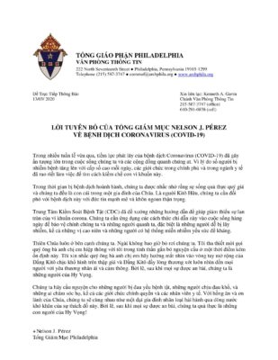Vietnamese Translation: Statement of Archbishop Nelson J. Pérez Regarding The Coronavirus (COVID-19)